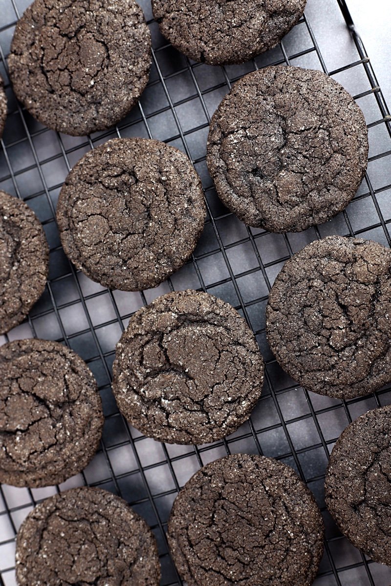 - Place cookie dough balls 2 inches apart onto a parchment lined baking sheet. Bake for 10-12 minutes, or until cookies begin to crack on top. Allow to cool for 5 minutes before removing to a wire rack to cool completely.